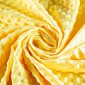 Мягкое, нежное, приятное на ощупь, с гладкой текстурой, красивым блестящим эффектом. Фактура – пузырьки. На лицевой стороне мягкий ворс 1 мм. Изнаночная сторона — гладкое трикотажное полотно без ворса. Используется для пошива покрывал, пледов, одеял, бортиков в кроватку, конвертов для новорождённых, мягких игрушек, комбинезонов, пижам, домашней одежды, лежанок для домашних питомцев.