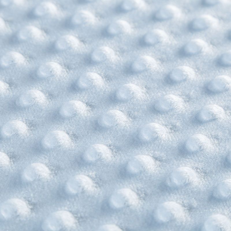 Мягкое, нежное, приятное на ощупь, с гладкой текстурой, красивым блестящим эффектом. Фактура – пузырьки. На лицевой стороне мягкий ворс 1 мм. Изнаночная сторона  — гладкое  трикотажное полотно без ворса. Используется  для пошива покрывал, пледов, одеял, бортиков в кроватку, конвертов для новорождённых, мягких игрушек, комбинезонов, пижам, домашней одежды, лежанок для домашних питомцев.