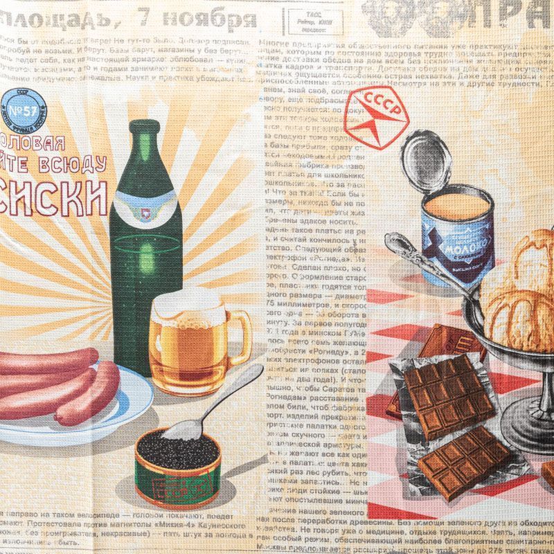 Качественная натуральная хлопчатобумажная ткань, обладающая высокой гигроскопичностью, с "газетным принтом". Универсальный материал, из которого  шьют кухонные полотенца, скатерти, прихватки, салфетки.