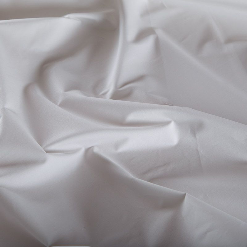 Итальянский хлопоковый поплин в белом оттенке. Ткань полотняного плетения средней плотности, не тянется, не сухая, отлично драпируется, не просвечивает, немного шуршит. Поплин очень нежный, приятный тактильно. Идеальный вариант для пошива летних платьев, блуз, рубашек, сарафанов.