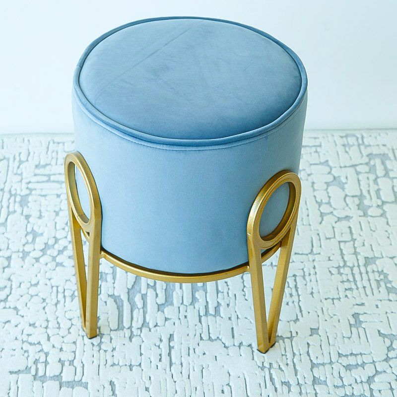 Пуф круглый D 35 см H 46 см серо-голубой бархат 521357