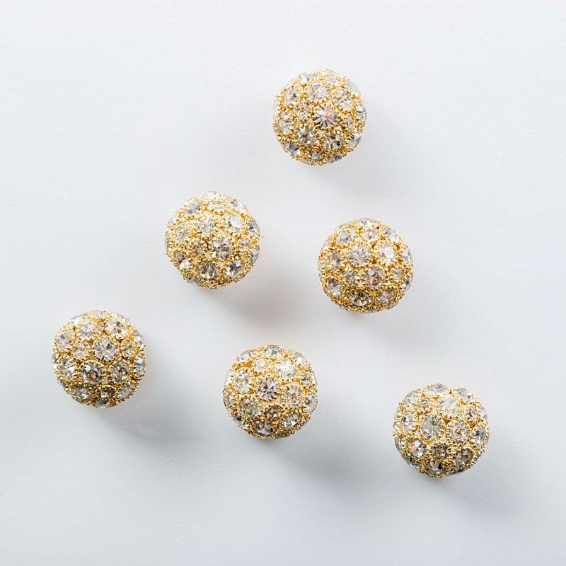 Круглые пришивные, не тяжелые пуговицы, изготовленные прессовым способом из сплава с кристаллическим прозрачным стеклом. Прекрасно подойдут для различных изделий сегмента верхней одежды, костюмов, вязанной одежды, в качестве украшений.