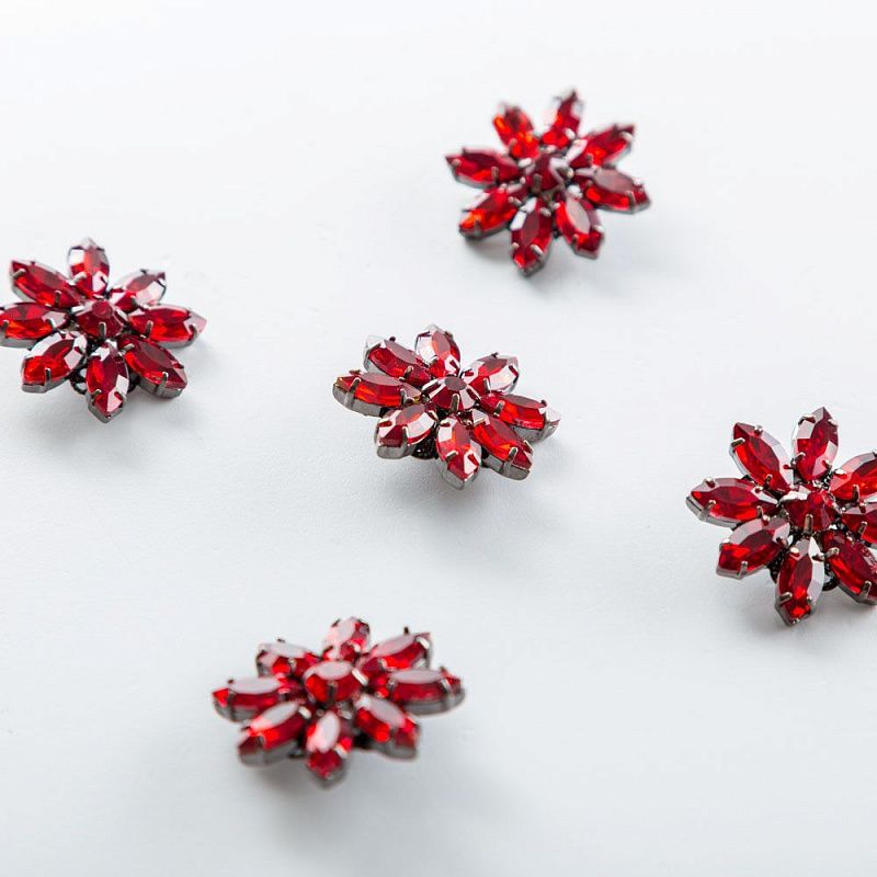 Круглые пришивные, не тяжелые пуговицы, изготовленные прессовым способом из сплава с кристаллическим стеклом винного оттенка. Прекрасно подойдут для различных изделий сегмента верхней одежды, костюмов, вязанной одежды, в качестве украшений.