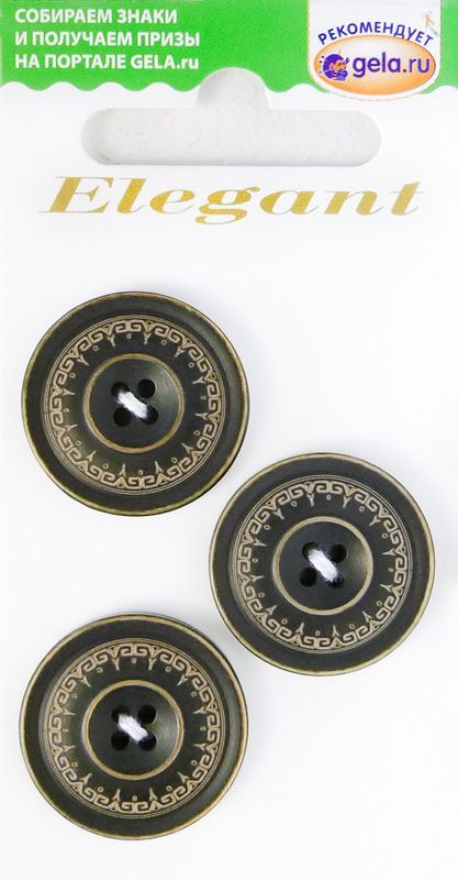 Пуговицы ELEGANT 23 мм пластик 3 шт 12081-23-00004/3 черный/медный