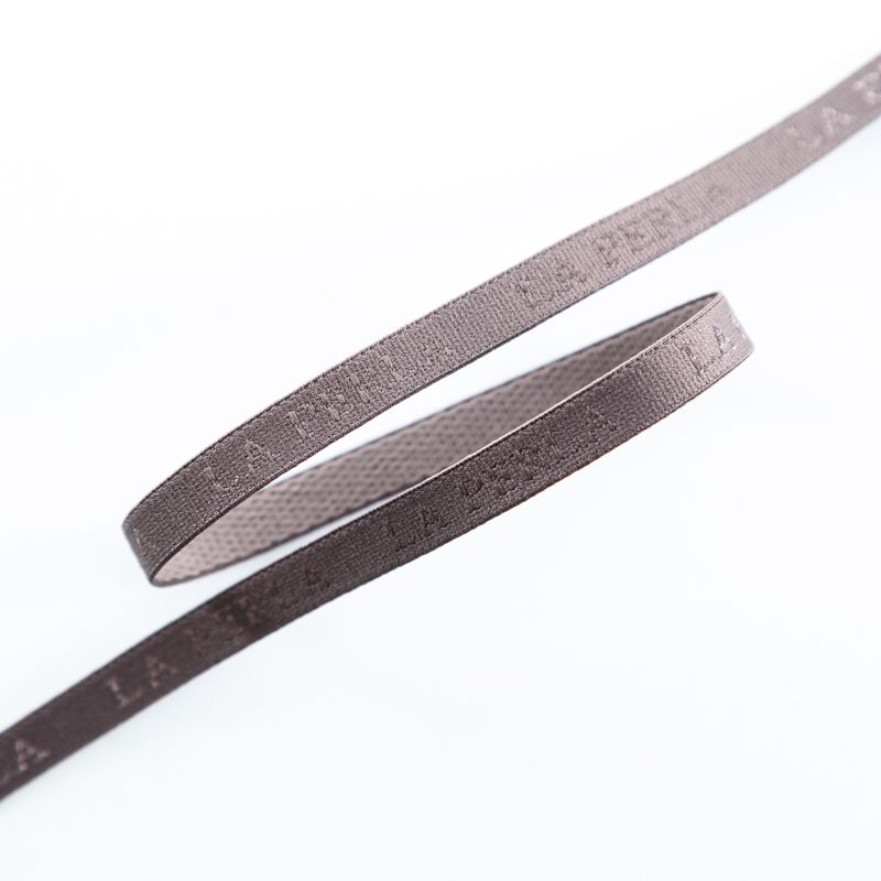 Бретелечная резинка используется для обработки стана бюстгальтера, а также для бретелей. Матовая с жаккардовой надписью бренда. Края ровные.