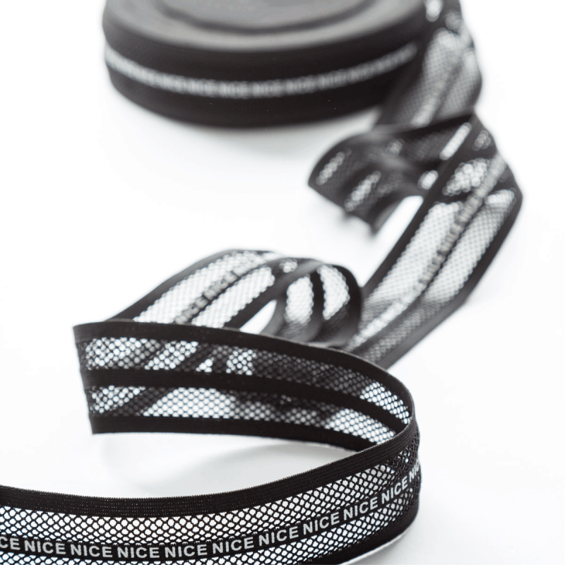 Резинка декоративная текстильная c сеткой, держит форму, тянется хорошо, мягко. По назначению для отделки одежды.