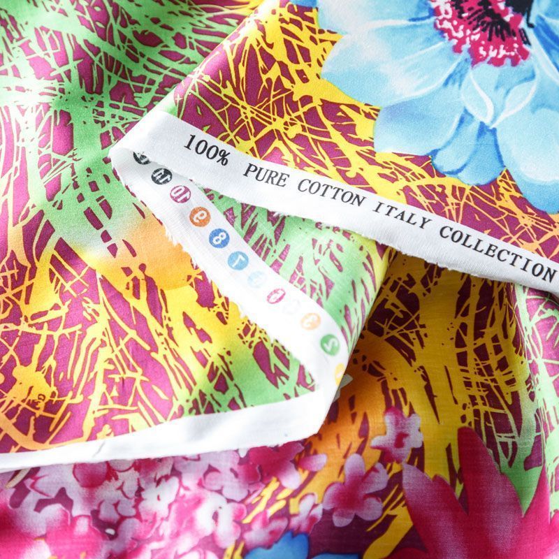 Итальяский плательно-рубашечный хлопок сатинового плетения с крупным ярким принтом. Ткань лёгкая, непрозрачная, поверхность матовая, гладкая, приятная к телу, хорошо драпируется. Прекрасно подойдет блузы, платья-рубашки, летнего сарафана, туники, домашней одежды.