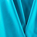Итальянский сатин-коттон лазурно-голубого цвета. Поверхность гладкая со сдержанным блеском, ткань плотная, но не толстая, хорошо держит форму, тянется за счет эластана в составе. Подойдет для пошива костюма, жакета, юбки, платья, брюк или шорт.