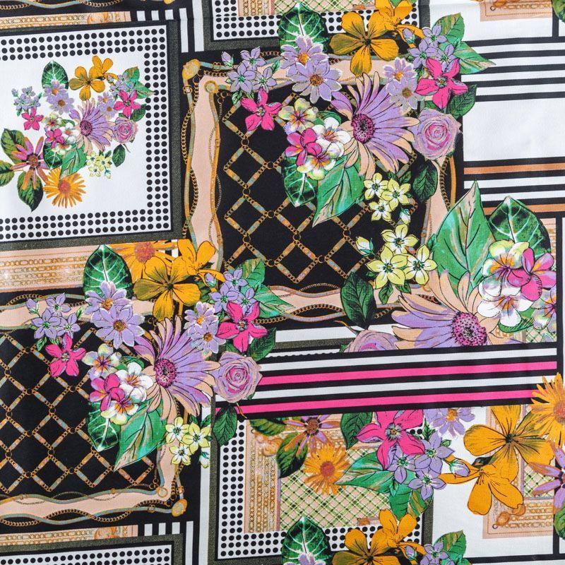 Сатин-коттон стрейч 063-07892 белый принтованный
