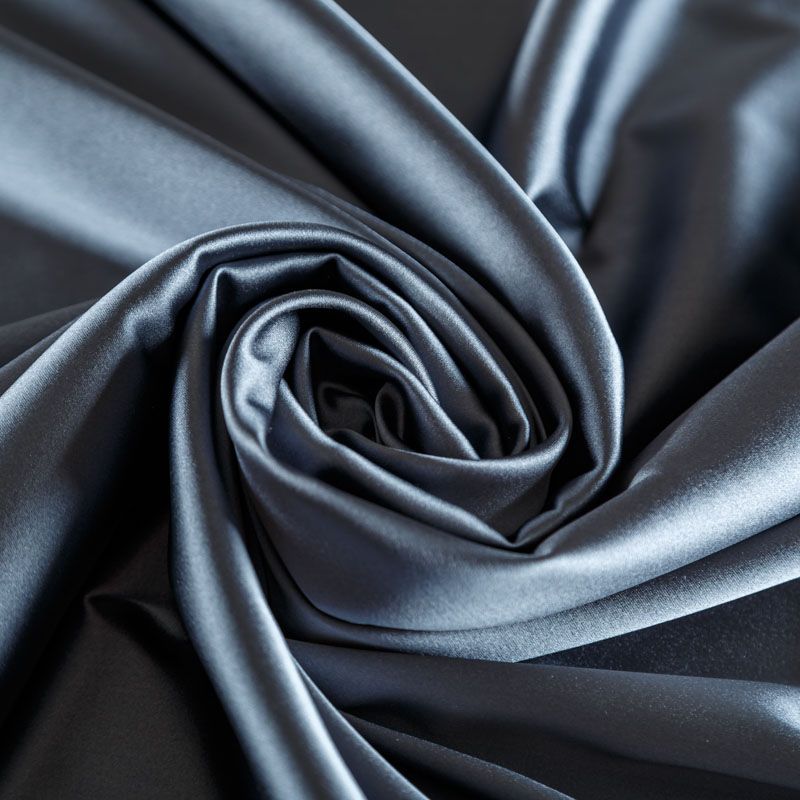 Пластичная ткань средней плотности с характерным сатиновым плетением, драпируется мягкими, красивыми складками, струится по фигуре, эластичная, поверхность имеет благородный сдержаный блеск. Роскошный сатин идеален для пошива нарядных и повседневных платьев, костюмов, брюк, юбок, бомберов.