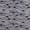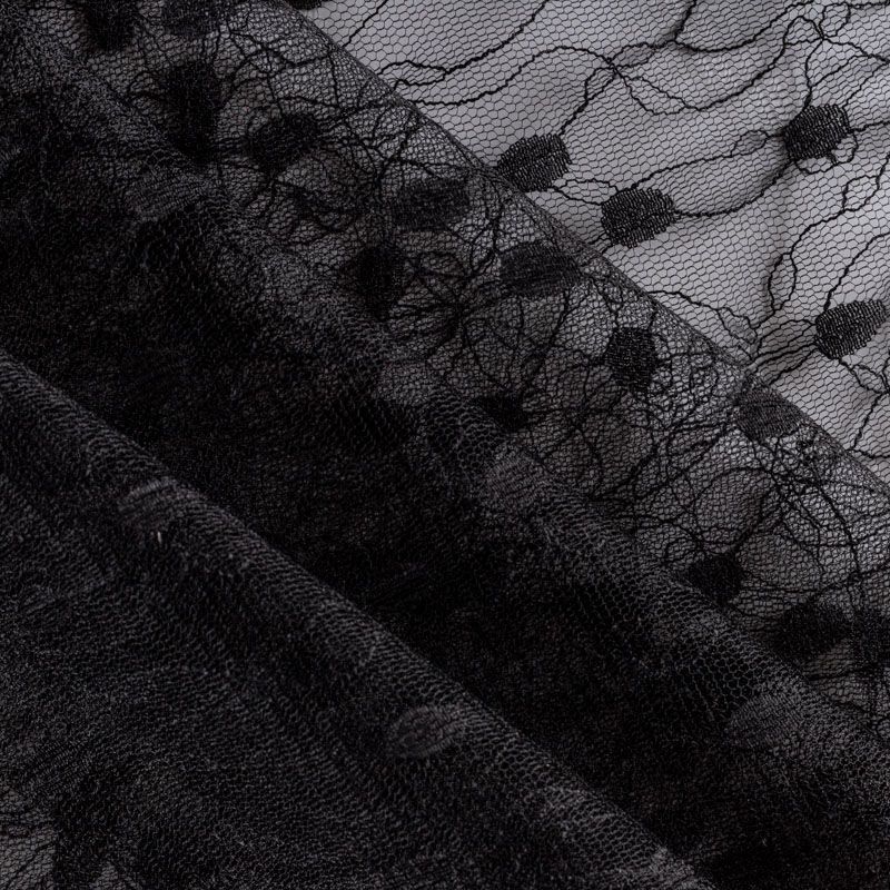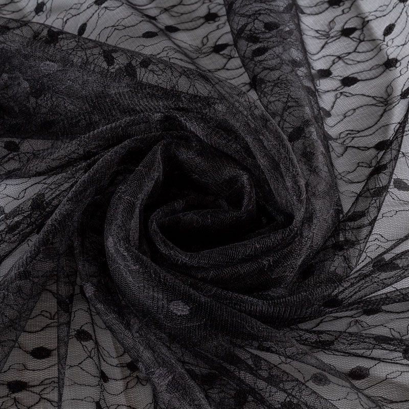 Тонкое, нежное, мягкое и прозрачное полотно, состоящее из мелких ячеек, на которых нанесен рельефный плетеный растительный принт. Красиво драпируется, тянется, применяется для декорирования деталей одежды, например, рукавов изделия, для пошива нарядной и повседневной одежды: топов, блузок, пышных юбок и платьев.