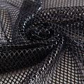 Рельефный полупрозрачный материал с сетчатой структурой. Поверхность полотна с металлизированным напылением, которое придает материалу легкий блеск и мерцание. Полотно мягкое, растяжимое во всех направлениях. Сетки нашли свое применение в процессе пошива и последующего декора вечерних нарядов, свадебных платьев, спортивной одежды, театральных костюмов.