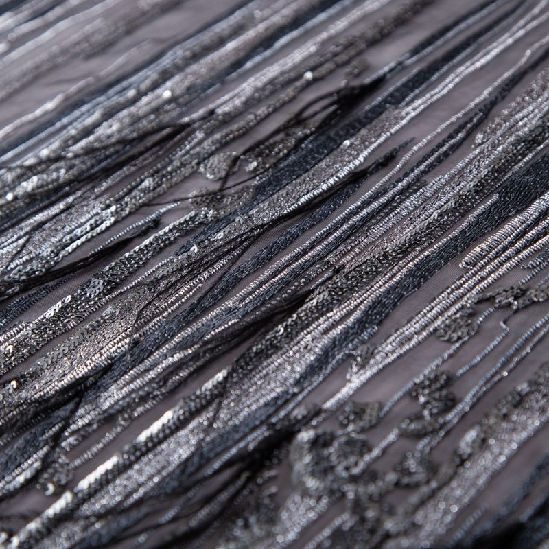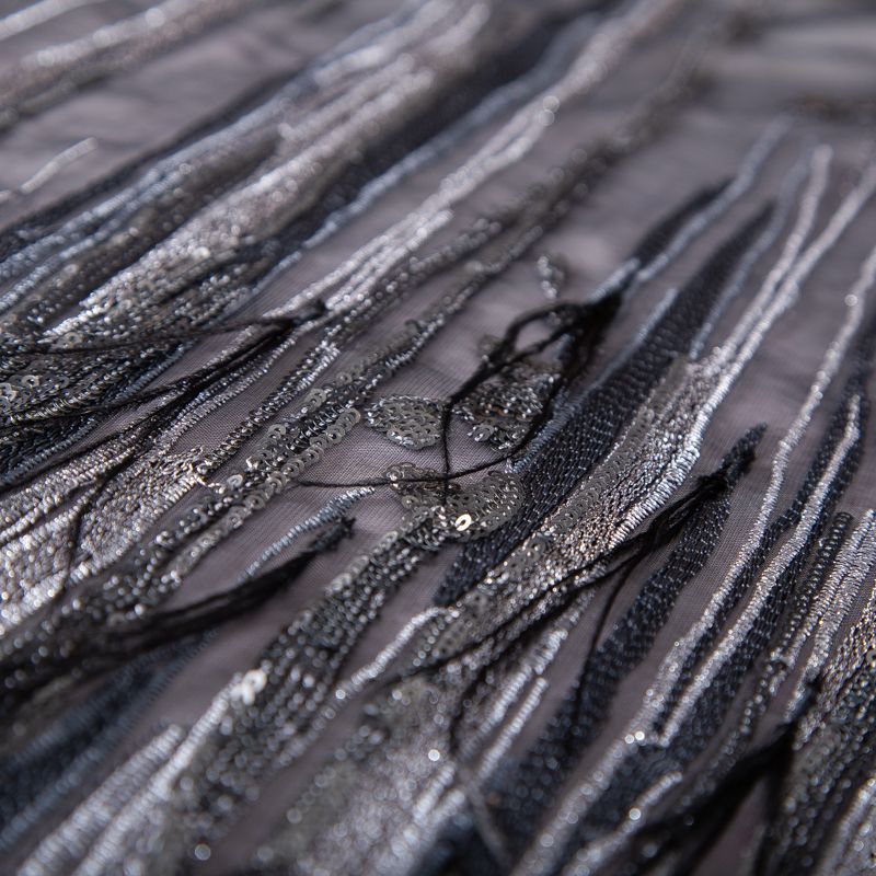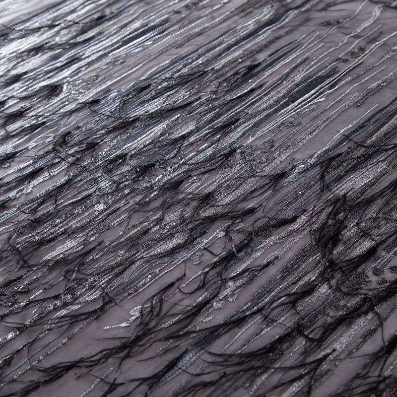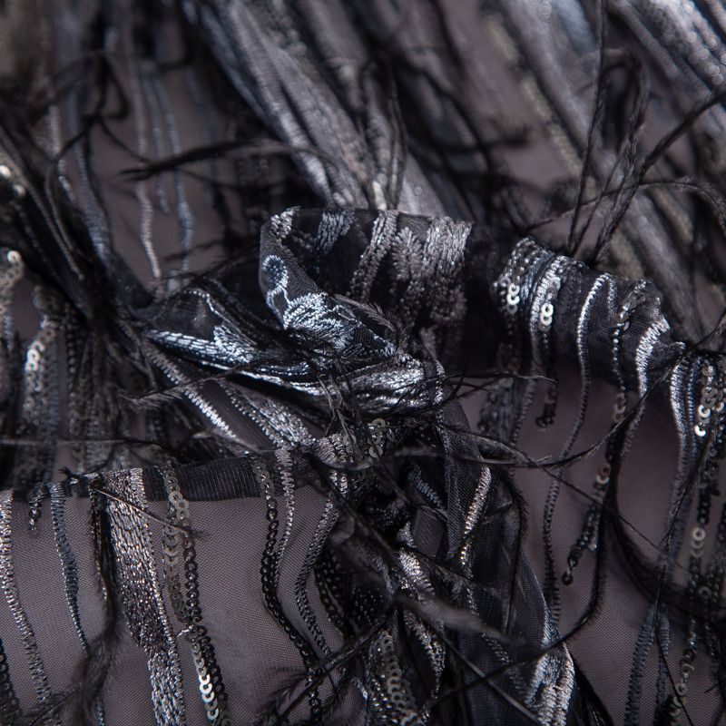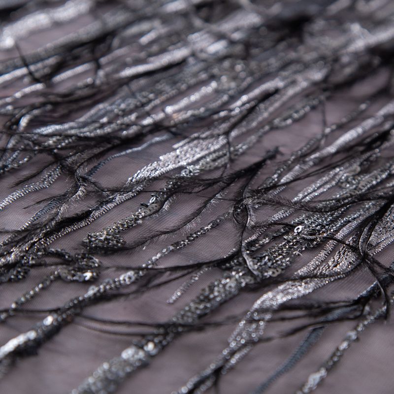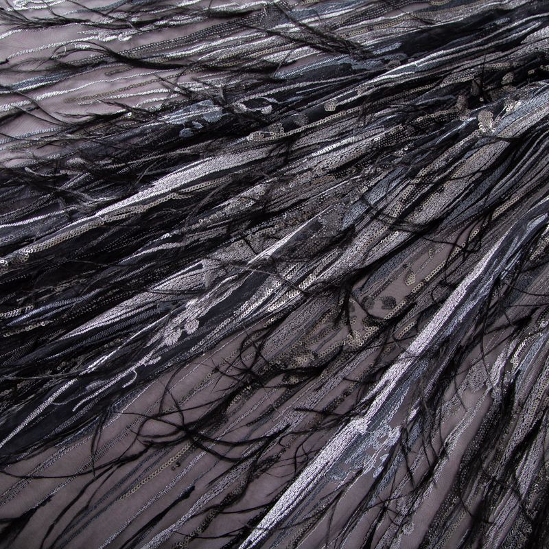 Сетка с вышивкой и пером 050-19877 черный/серебро