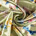 Шелк натуральный К06-0059 светло-салатовый принтованный в Северодвинске