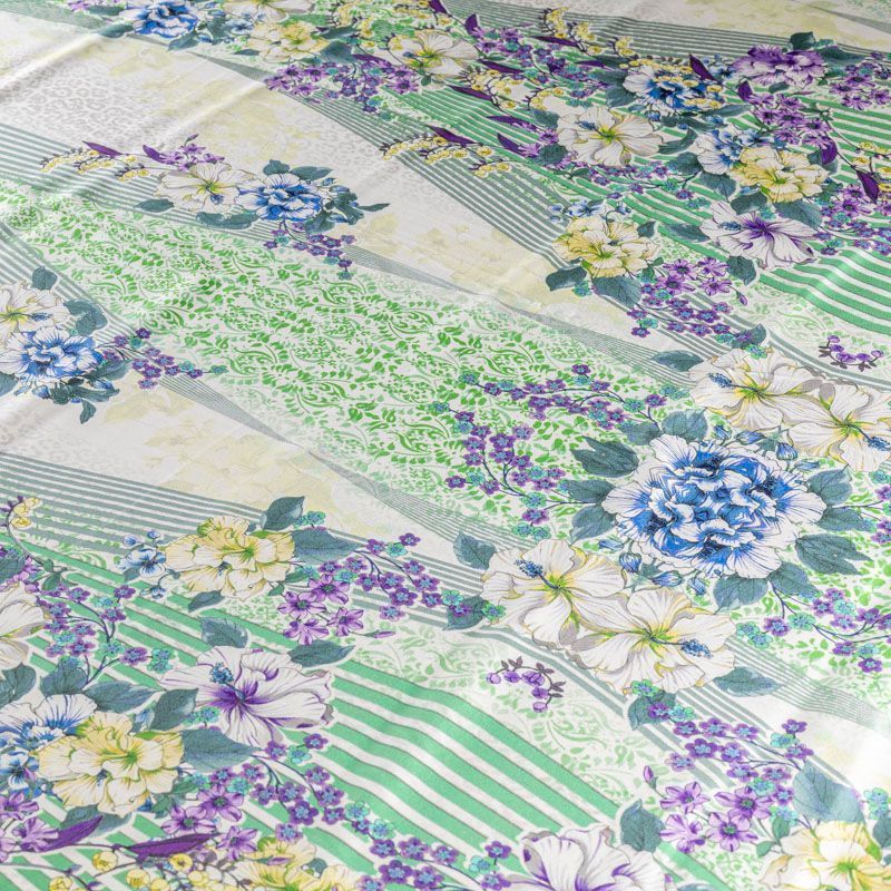 Итальянский матовый шелк с насыщенным по составу принтом: сочетание геометрических линий, анималистического и растительного рисунка на молочном фоне, тонкий, слегка прозрачный, отлично драпируется, легкий и струящийся с креповой поверхностью. Идеально подойдет для пошива платьев и сарафанов расклешенных моделей, с воланами, летящих юбок, топов, блузки, костюма в пижамном стиле, домашней одежды.