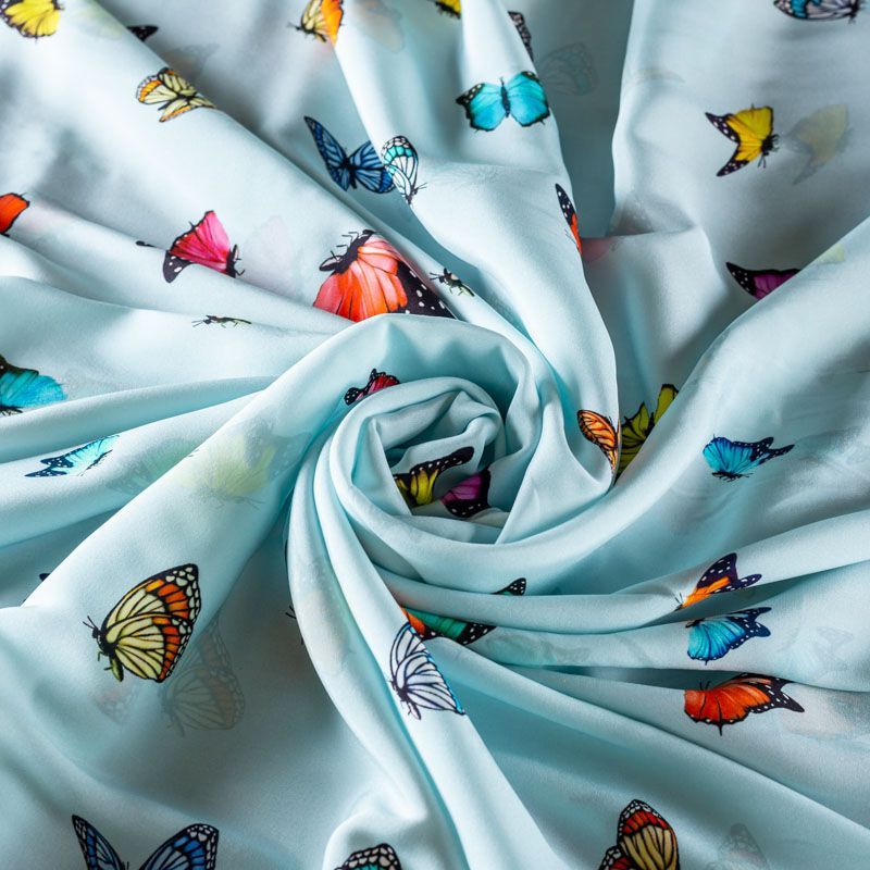 Шелк натуральный К13-934 светло-голубой принтованный в Северодвинске