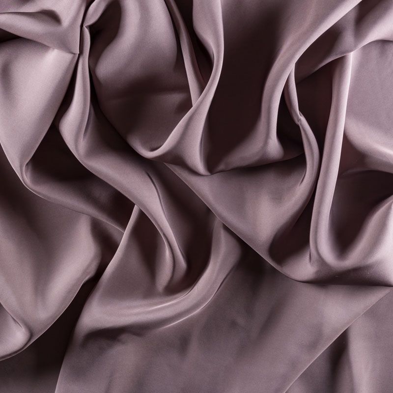 Итальянский матовый шелк дымчато-серого оттенка, тонкий, слегка прозрачный, отлично драпируется, легкий и струящийся с креповой поверхностью. Идеально подойдет для пошива платьев и сарафанов расклешенных моделей, с воланами, летящих юбок, топов, блузки, костюма в пижамном стиле.
