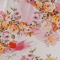 Итальянский шелк с цветочным принтом в нежных оттенках на белом фоне, тонкий, слегка прозрачный, отлично драпируется, тянется за счет эластана в составе, легкий и струящийся с атласной поверхностью. Идеально подойдет для пошива платьев и сарафанов расклешенных моделей, с воланами, летящих юбок, топов, блузы, костюма в пижамном стиле.