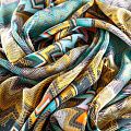Шелк натуральный К24-015 бирюзовый принтованный в Северодвинске