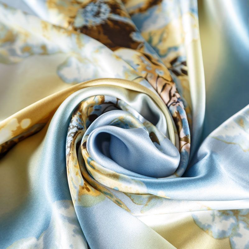 Итальянский атласный шелк с красивым цветочным принтом. Ткань средней плотности, не просвечивает, струится, хорошо драпируется. Поверхность глядкая, имеет благородный сатиновый блеск. Подойдет смелых образов: летних платьев и сарафанов, как летящих фасонов, так и скроенных по косой, накидок, юбок, блузок, костюмов, широких брюк, домашней одежды.