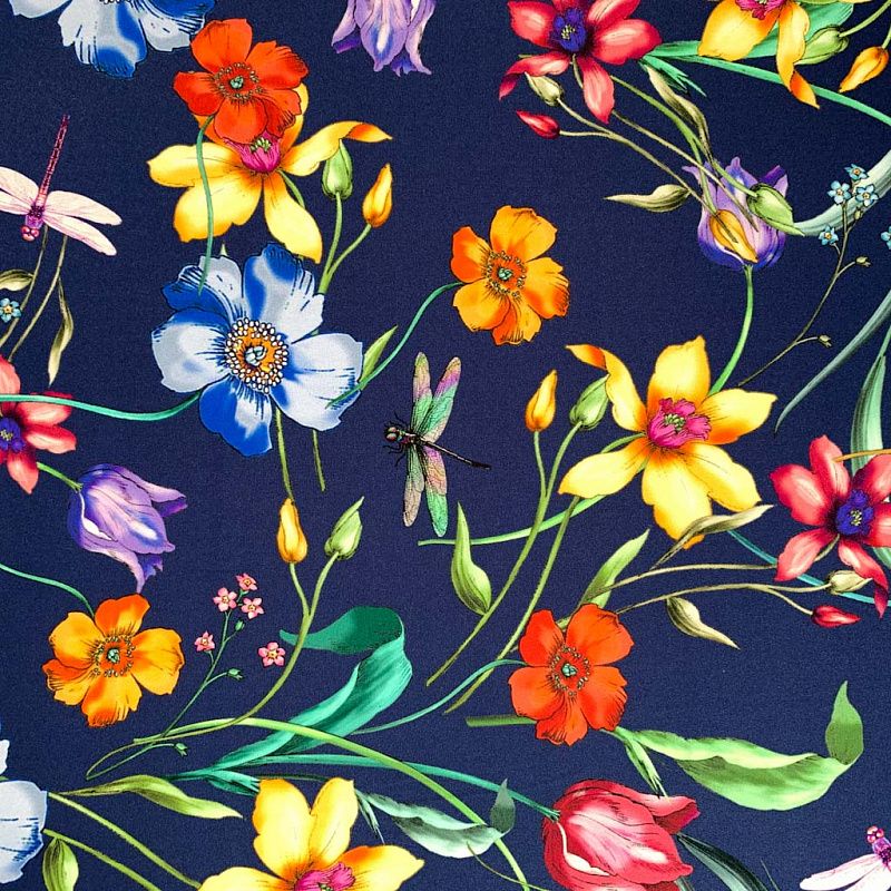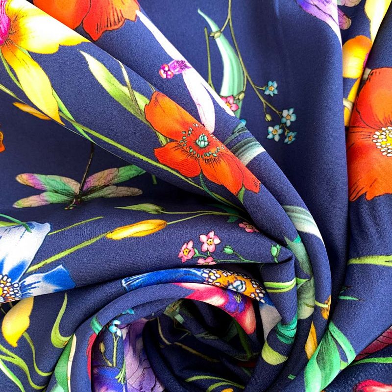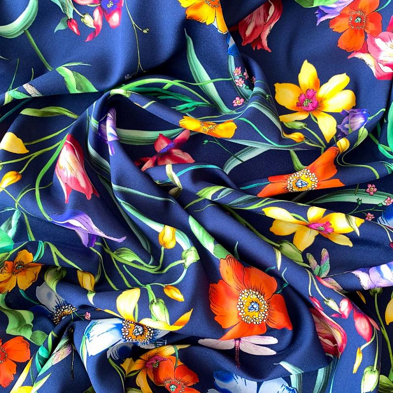 Шелк натуральный К32-155 темно-синий принтованный в Северодвинске