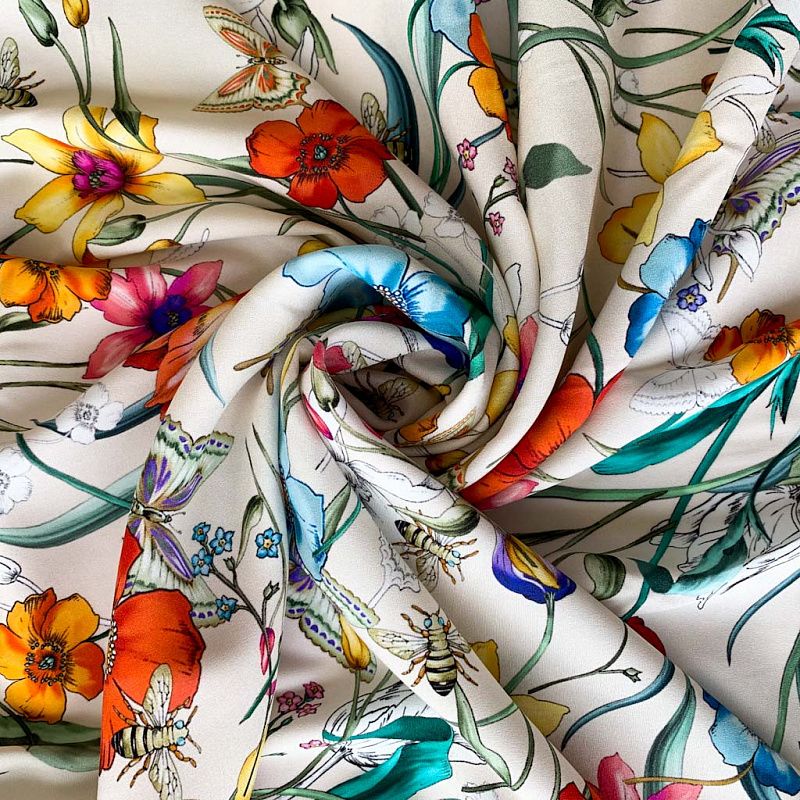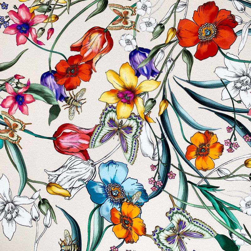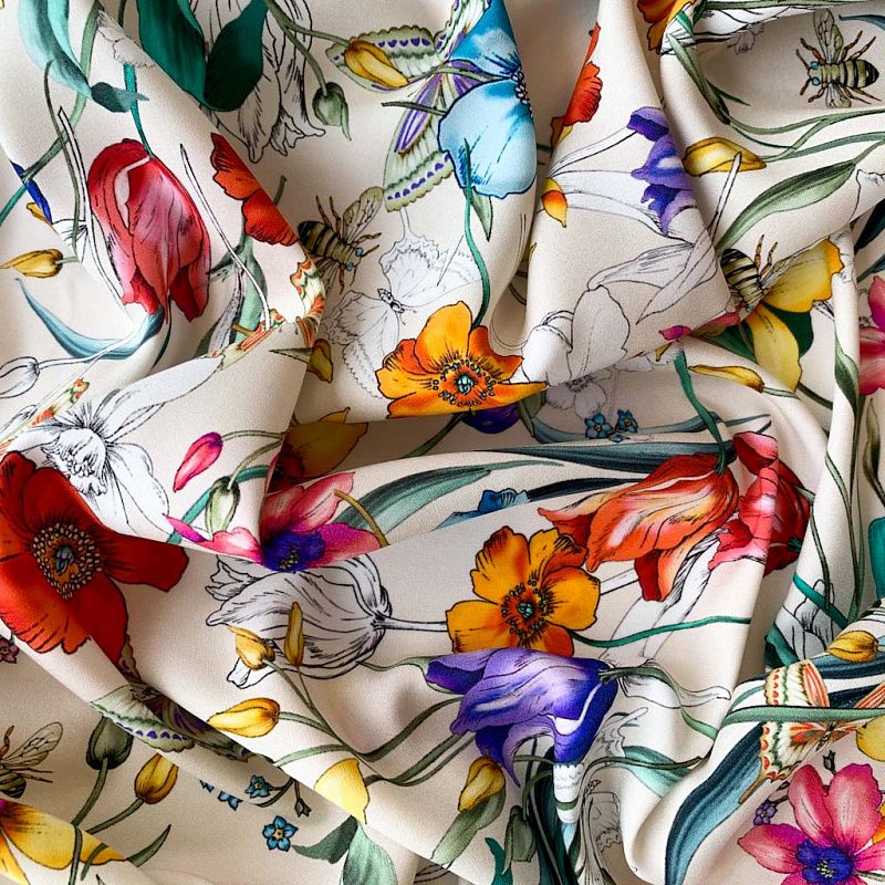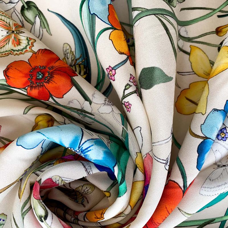 Шелк натуральный К32-159 сливочный принтованный в Северодвинске