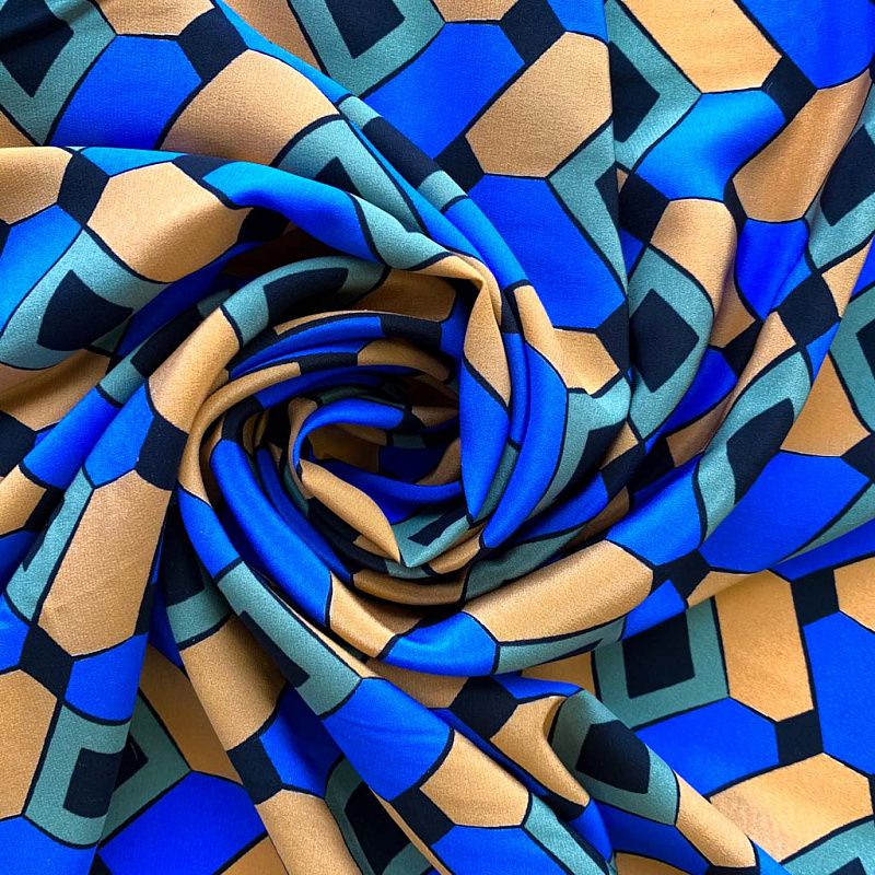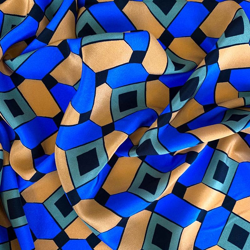 Шелк натуральный К32-232 ярко-синий принтованный в Северодвинске