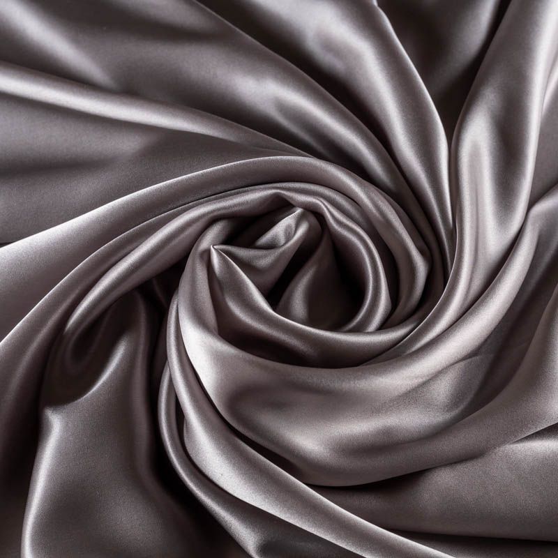Итальянский атласный шелк стрейч дымчатого оттенка. Мягкий и пластичный, хорошо драпируется, легкий и нежный, приятный к телу, с роскошным блеском. Отличный смотрится в классических блузках, юбках, туниках, гармонично сочетается с деловым костюмом, а также с джинсами, юбками.
