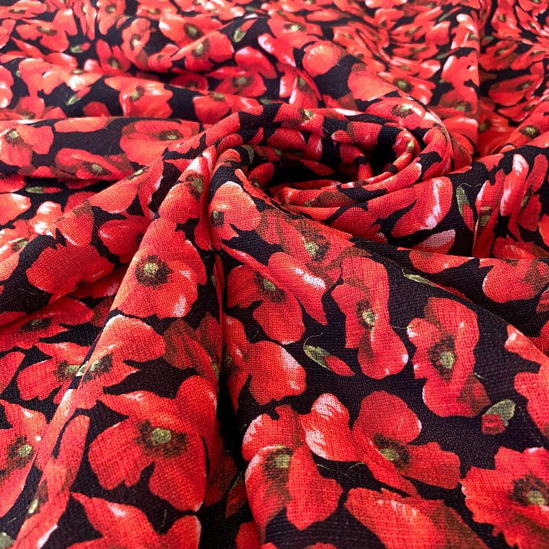 Тонкий, слегка рельефный итальянский шелк с добавлением тончайшей шерсти с ярким эффектным цветочным принтом. Ткань немного рыхлая, но не прозрачная. Хорошо драпируется струящимися складками. Идеально подойдет для платья, юбки, костюма для прохладного лета или теплой осени.