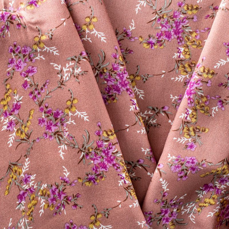 Плательно-блузочный штапель с добавлением шелка с флористическим принтом. Ткань очень мягкая, нежная, пластичная, шелковистая на ощупь, хорошо драпируется, практичная. Особенно актуальна летом, шелк-штапель очень легкий, обволакивающий прохладой. Идеален для пошива летней детской одежды, сарафанов, платьев, юбок, блузок, домашней одежды: халатов, ночной пижамы.
