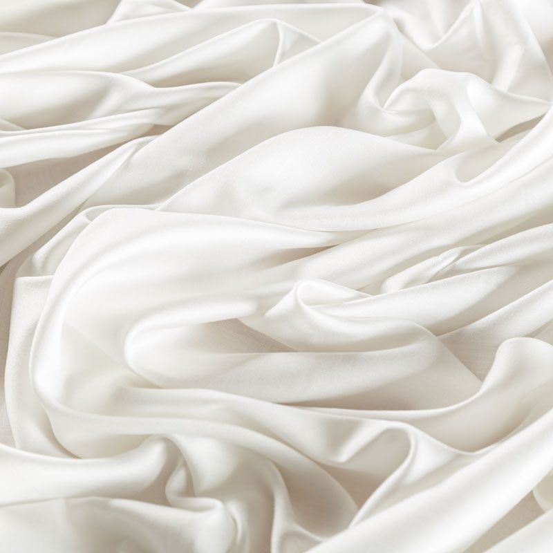 Плательно-блузочный штапель с добавлением шелка в молочном оттенке. Мягкий, нежный, пластичный, шелковистый на ощупь, хорошо драпируется, практичный, тянется за счет эластана в составе. Особенно актуален летом, он очень легкий, обволакивающий прохладой. Идеален для пошива летней детской одежды, сарафанов, платьев, юбок, блузок, домашней одежды: халатов, ночной пижамы.