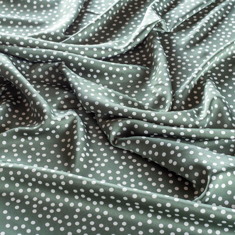Тонкая, легкая, струящаяся ткань, не просвечивает, очень нежная и прятная к телу, обладает благородным атласным блеском, хорошо драпируется, тянется за счет эластана в составе. Идеально подойдет для пошива блузок, платьев и юбок, а также топов, платков, домашней одежды.