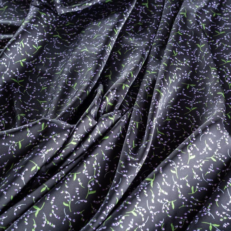 Тонкая, легкая, струящаяся ткань, не просвечивает, очень нежная и прятная к телу, обладает благородным атласным блеском, хорошо драпируется, тянется за счет эластана в составе. Идеально подойдет для пошива блузок, платьев и юбок, а также топов, платков, домашней одежды.