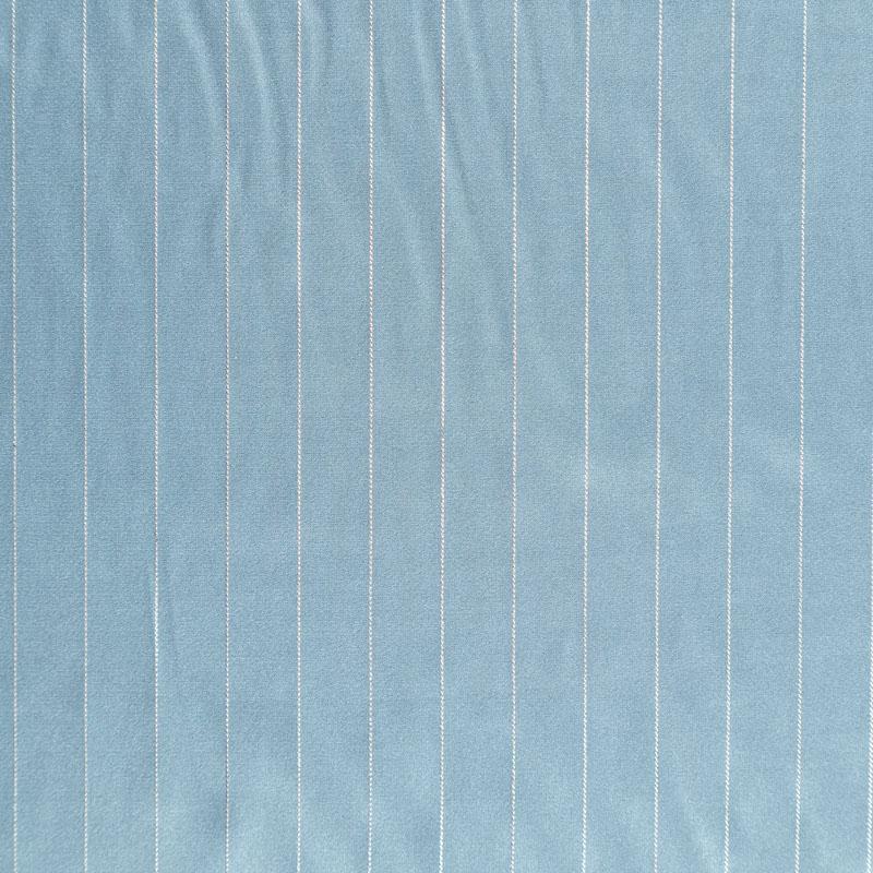 Тонкая, легкая, струящаяся ткань, декорированная тонкими вертикальными полосками люресовой нити, не просвечивает, очень нежная и прятная к телу, обладает благородным атласным блеском, хорошо драпируется, тянется за счет эластана в составе. Идеально подойдет для пошива блузок, платьев и юбок, а также топов, платков, домашней одежды.