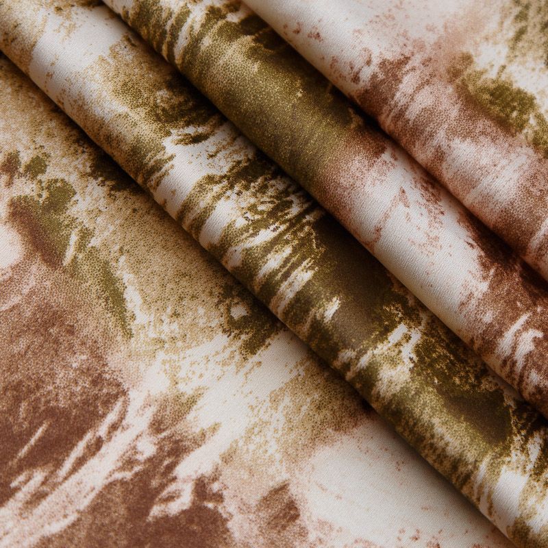 Шелк синтетический стрейч 065-17542 бежево-оливковый принтованный