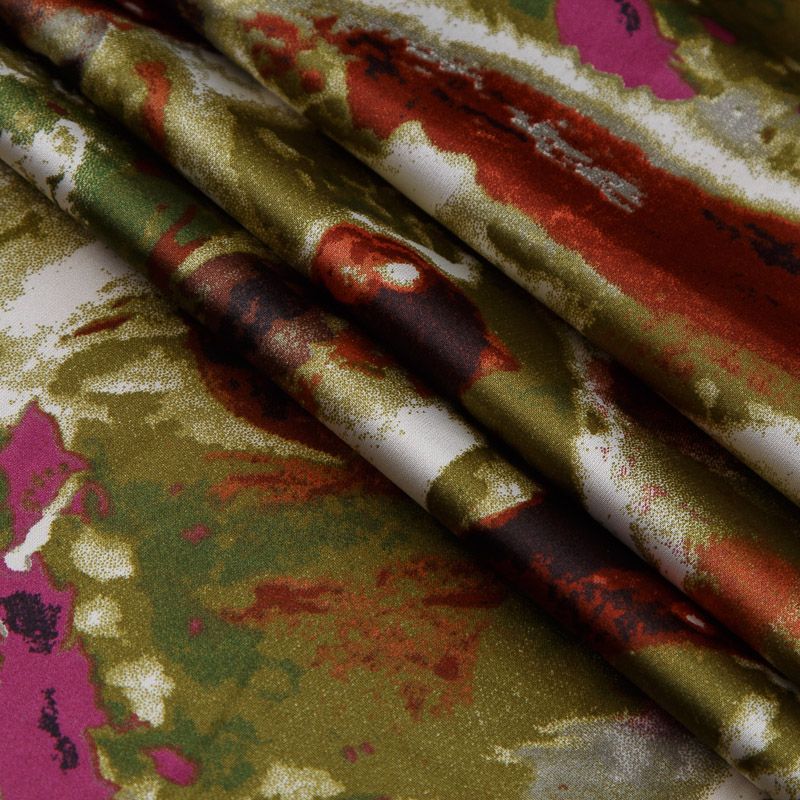 Шелк синтетический стрейч 065-17546 оливковый принтованный в Северодвинске