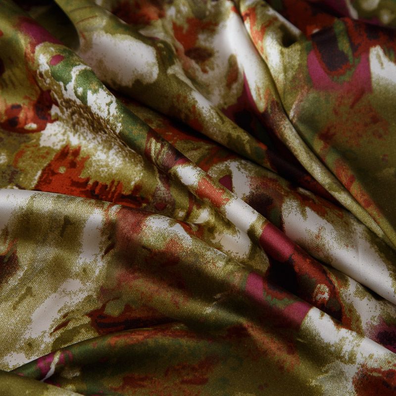 Шелк синтетический стрейч 065-17546 оливковый принтованный