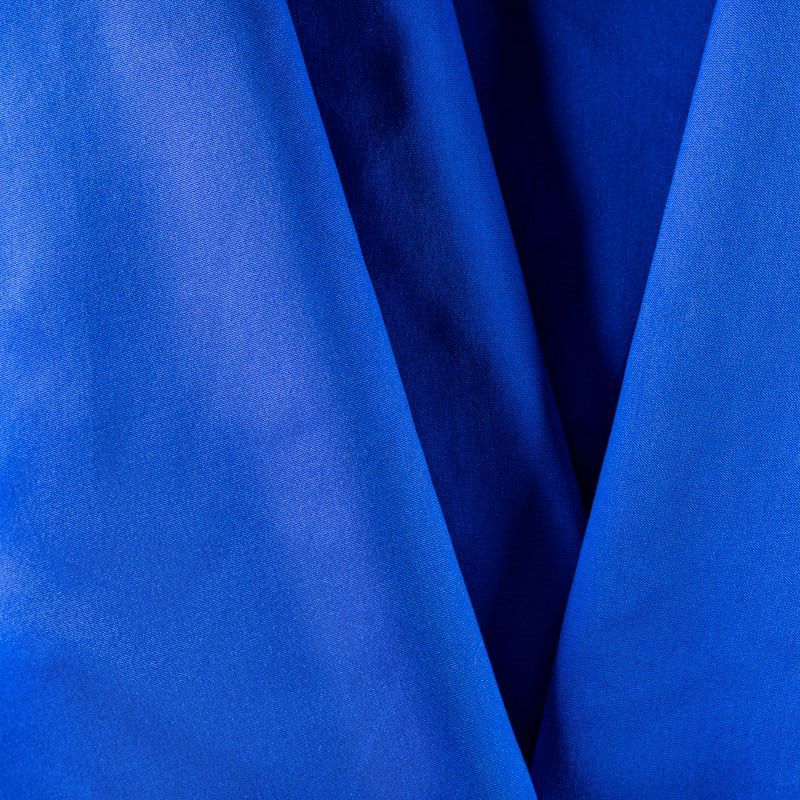 Шелковистая тафта василькового оттенка. Поверность матовая, с благородным шелковым лоском. Полотно средней плотности, легкое, отлично держит форму, драпируется жесткими складками. Хорошо смотрится в платьях с пышными юбками и крупными драпировками, костюмах, корсетах для платья, вечерних и коктельных платьях.