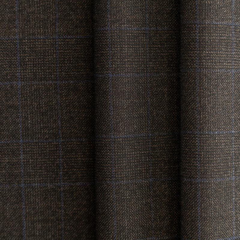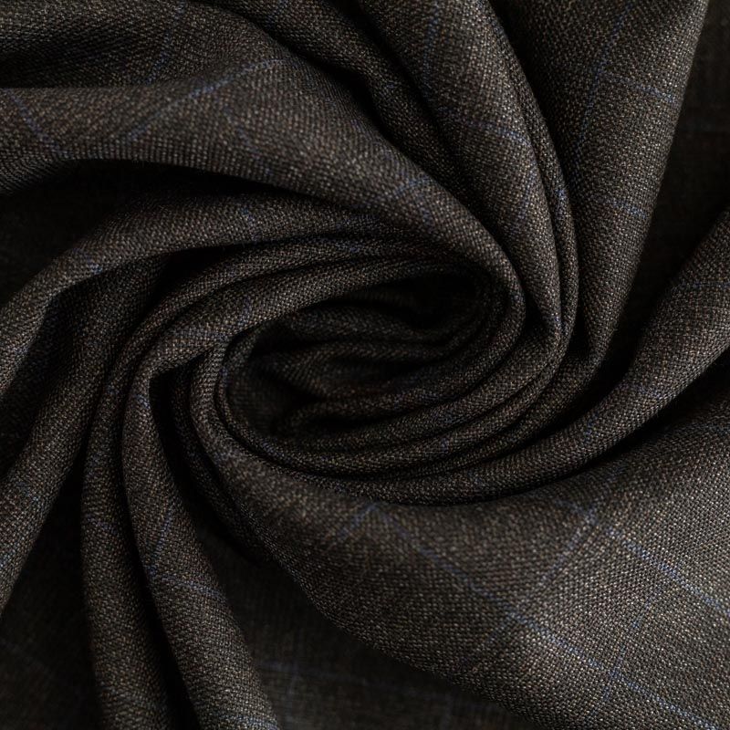 Костюмно-плательная итальянская шерсть средней плотности, не много суховата на ощупь, при этом очень хорошо драпируется и ниспадает. Очень теплая, уютная, не колется, в носке очень комфортная. Тонкая голубая полоска, образующая клетку, освежает и облагораживает сдержанный серо-коричневый фон ткани. Подойдет для пошива стильного платья прямого или расклешенного силуэта для сезона осень-зима, юбок, костюмов, жакетов, брюк.