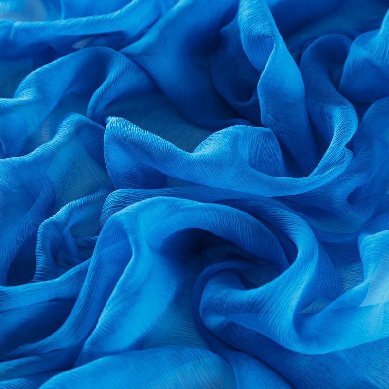Воздушная шелковая жатая ткань, легкая, тонкая, полупрозрачная. На ощупь шифон-жатка очень мягкий и приятный, не тянется. Подойдет для пошива тончайших воздушных блуз, изумительных вечерних и летних платьев в пол, коротких коктейльных платьев, топов, блузок, туник и элегантных шарфов.
