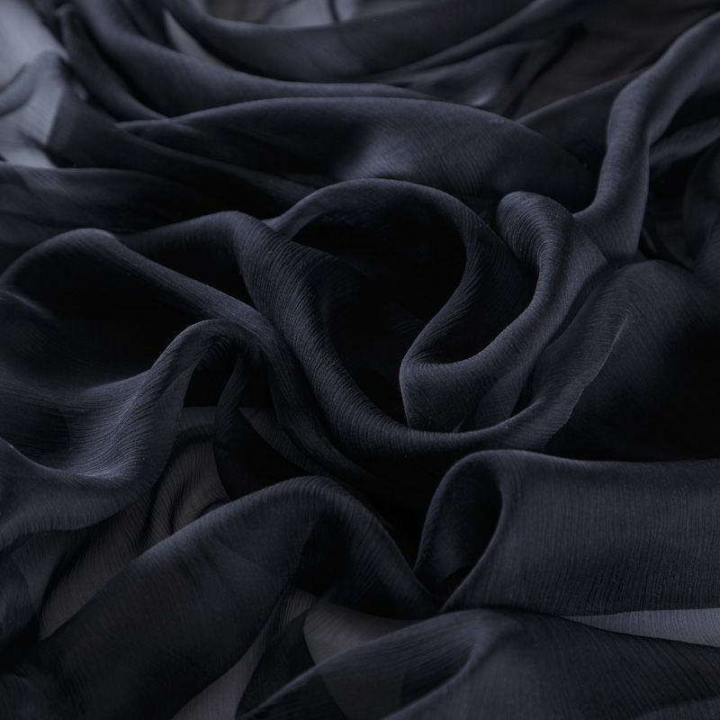 Воздушная шелковая жатая ткань, легкая, тонкая, полупрозрачная. На ощупь шифон-жатка очень мягкий и приятный, не тянется. Подойдет для пошива тончайших воздушных блуз, изумительных вечерних и летних платьев в пол, коротких коктейльных платьев, топов, блузок, туник и элегантных шарфов.