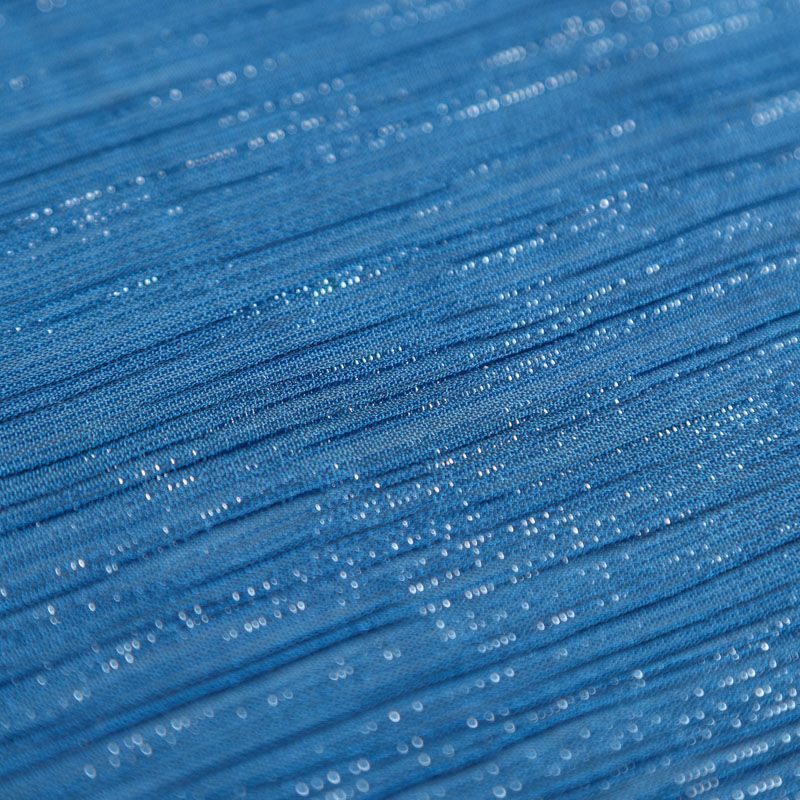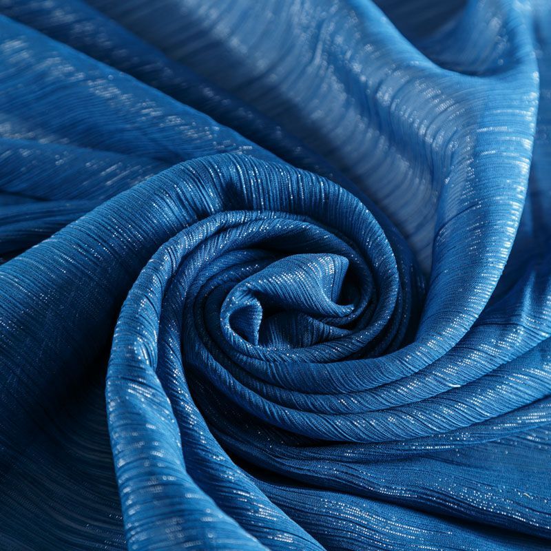 Воздушная жатая ткань с прозрачной люрексной нитью, легкая, тонкая, полупрозрачная. Не тянется и хорошо сохраняет форму. На ощупь шифон-жатка очень мягкий и приятный. Подойдет для пошива тончайших воздушных блуз, изумительных вечерних и летних платьев в пол, коротких коктейльных платьев, топов, блузок, туник и элегантных шарфов.
