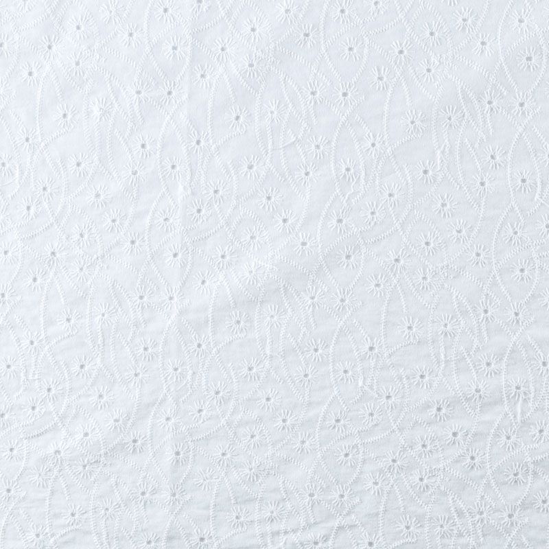 Итальянское шитье на белоснежной хлопковой основе с абстрактной, элегантной вышивкой, расположеннной по всему полотну. Ткань мягкая, легкая, пластичная, приятная на ощупь, просвечивает, потребуется подклад. Обе кромки ткани оформлены фигурными фестонами. Идеально подойдет для пошива рубашки, блузы, топа в воланами, туники, платья, сарафана, юбки, шорт.