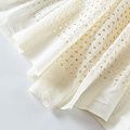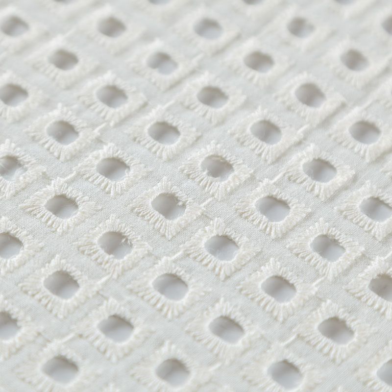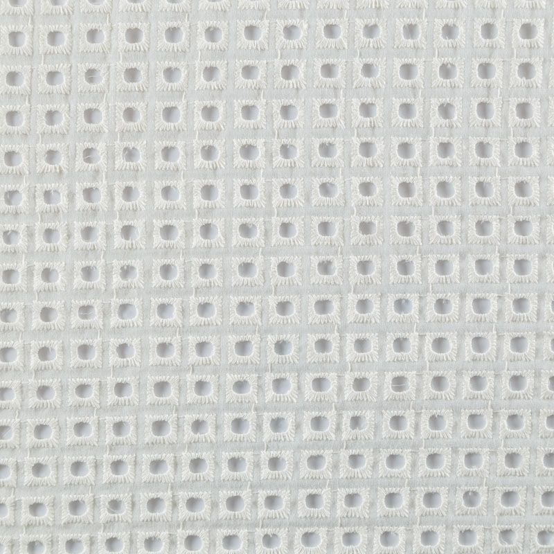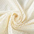 Итальянский мягкий и нежный хлопок сливочного оттенка с геометрической вышивкой и перфорацией. Узор выполнен путём машинной вышивки нитками в цвет ткани и расположен по всему полотну. Фактура ткани однородная, имеет тенденцию к сминаемости, не тянется, приятная на ощупь. Может потребоваться подклад. Идеально подходит для создания летних платьев, сарафанов, юбок, блузок и топов.