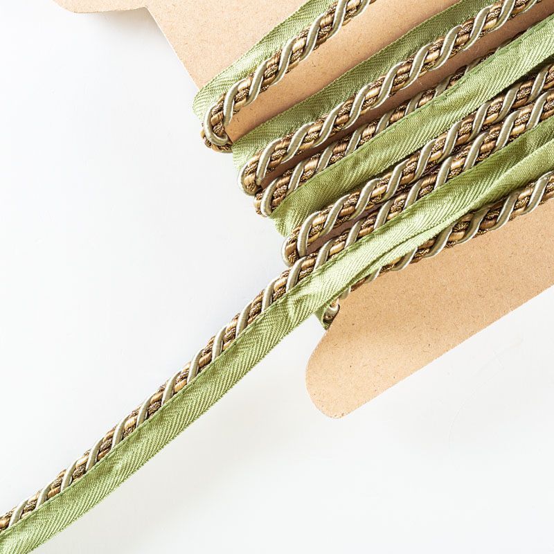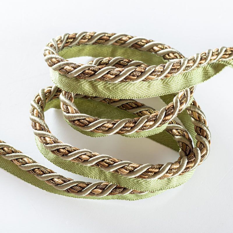 Декоративный витой круглый шнур, снабженый тесьмой для втачивания в стыковочный шов изделия. Применяется для отделки мягкой мебели, чехлов, декорирования домашнего текстиля, штор, покрывал, подушек. Позволяет изделию сохранять форму, образуя каркас. Диаметр шнура - 8 мм. Общая ширина шнура с тесьмой - 2 см.