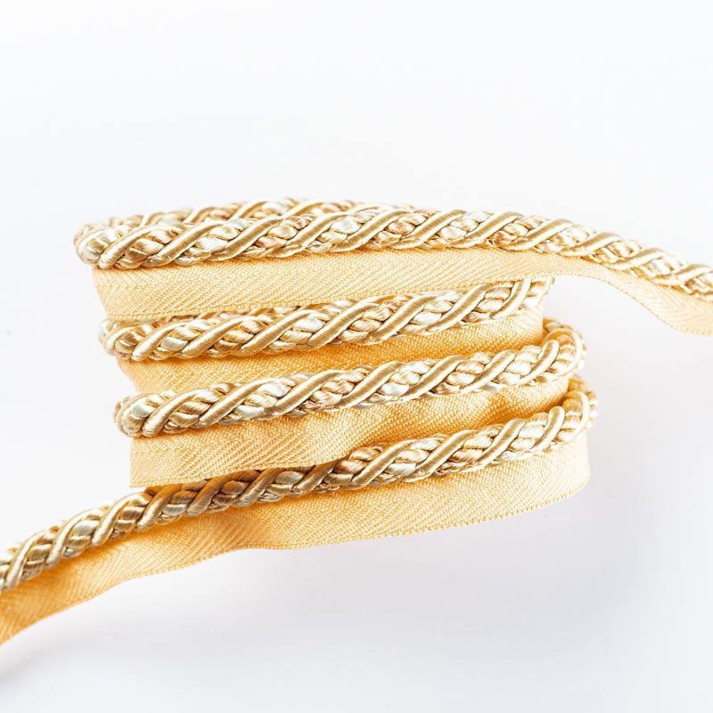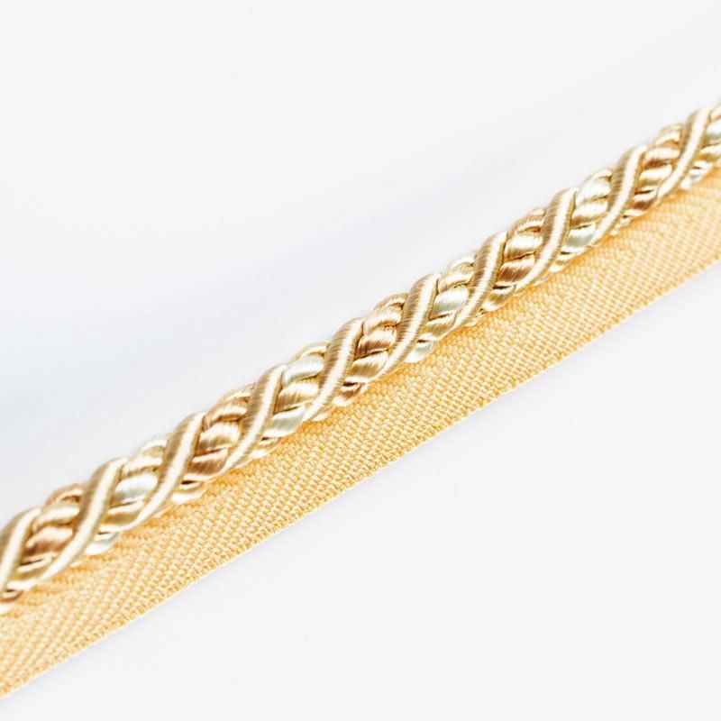 Декоративный витой круглый шнур, снабженый тесьмой для втачивания в стыковочный шов изделия. Применяется для отделки мягкой мебели, чехлов, декорирования домашнего текстиля, штор, покрывал, подушек. Позволяет изделию сохранять форму, образуя каркас. Диаметр шнура - 8 мм. Общая ширина шнура с тесьмой - 2 см.