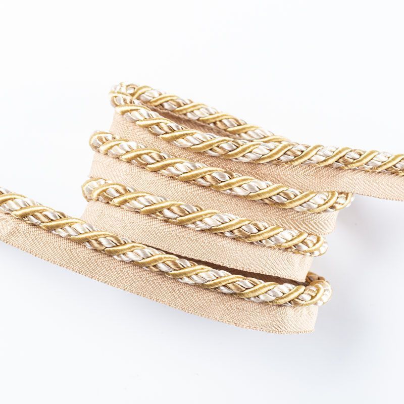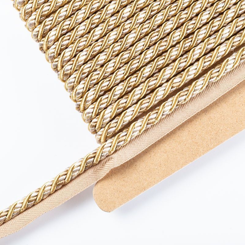 Декоративный витой круглый шнур, снабженый тесьмой для втачивания в стыковочный шов изделия. Применяется для отделки мягкой мебели, чехлов, декорирования домашнего текстиля, штор, покрывал, подушек. Позволяет изделию сохранять форму, образуя каркас. Диаметр шнура - 8 мм. Общая ширина шнура с тесьмой - 2 см.