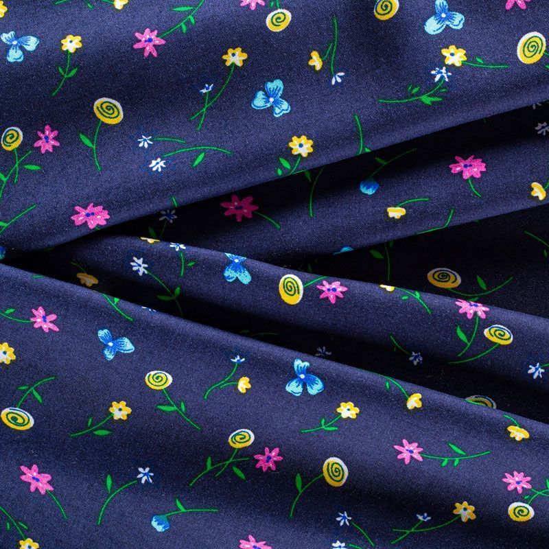 Итальянский плательно-блузочный штапель с мелким цветочным принтом на темно-синем фоне. Мягкий, тонкий, нежный, пластичный, приятный на ощупь, хорошо драпируется, практичный. Подойдет для пошива платья, топа, блузки, рубашки, юбки, летних брюк.