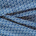 Плательно-блузочный штапель от итальнского дизайнера с мелким принтом в виде цветочков на синем фоне. Мягкий, тонкий, нежный, пластичный, приятный на ощупь, хорошо драпируется, практичный. Подойдет для пошива платья, топа, блузки, рубашки, юбки, летних брюк.