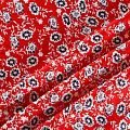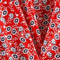 Плательно-блузочный штапель с не крупным цветочным принтом на красном фоне. Мягкий, тонкий, нежный, пластичный, приятный на ощупь, хорошо драпируется, практичный. Подойдет для пошива платья, топа, блузки, рубашки, юбки, летних брюк.